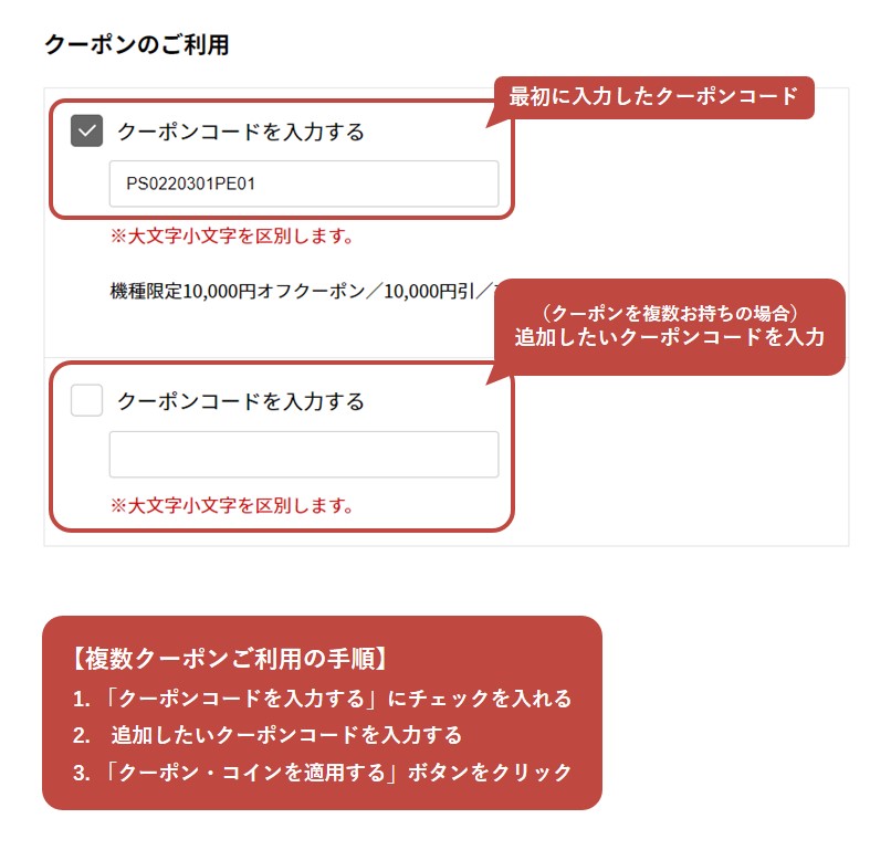 【ご案内】複数のクーポンを併用される際のご利用方法は、