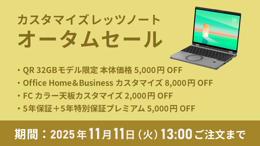 カスタマイズレッツノートをご購入の際には、会員様限定のまとめ買い割引をぜひご利用下さい。