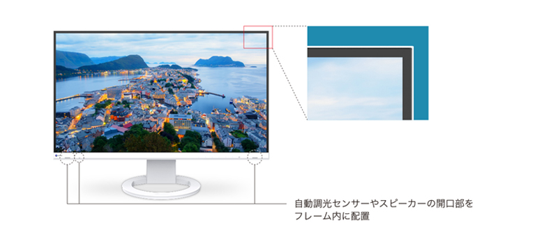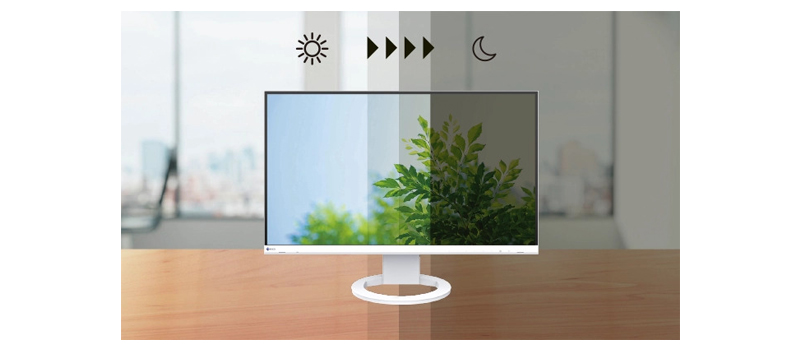環境光を感知し、周囲の明るさに応じて画面の明るさを自動で調整するAuto EcoView機能を搭載。環境照度への画面の明るさの追従性を上げることで、より自然な調光に進化。目の疲れを軽減します。