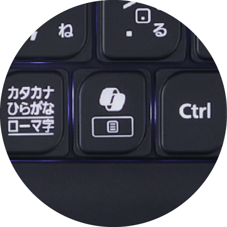 キーを押した時に沈み込む深さは約2mm。しっかりとした打ち⼼地を確保することで指が疲れにくく、快適に⼊⼒できます。また、隣のキーとの間隔は、通常のモバイルPCよりも広い縦横19mmを確保*。キーピッチを広くすることで、ミスタッチを減らします。