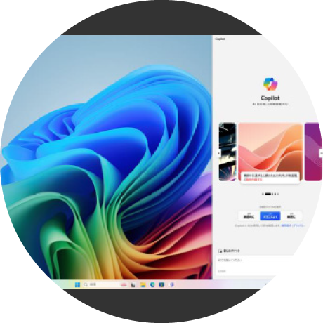 Windows 11では、お好きなレイアウトをアプリごとに表示場所を選ぶだけで、複数のアプリを自動で分割表示(スナップレイアウト)、さらに、機能が強化されたMicrosoft Teamsをプリインストールしているので、オンラインコミュニケーションがより快適になります。