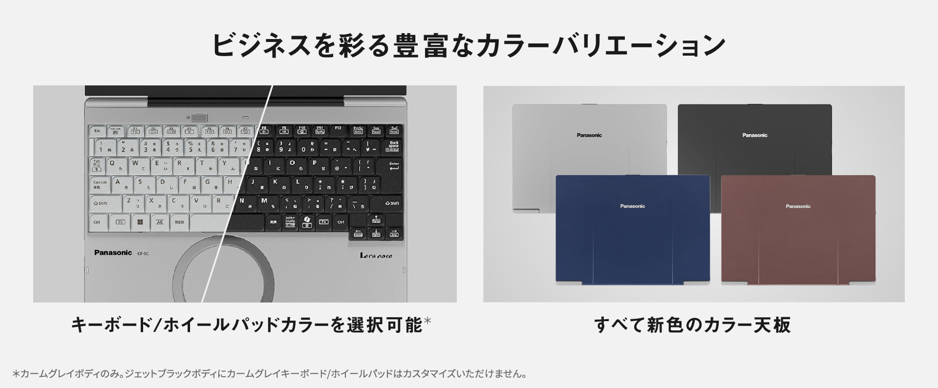 - *2021年6月発売モデルおよび2021年1月発売モデルとの処理速度比較。下記の比較数値はあくまでも目安であり、システム構成や測定条件の違いにより実際の性能とは異なる場合があります。約1.4倍 CF-FC6BSVCP (CPU:インテル® Core™ Ultra 7 プロセッサー 255H メモリー:64GB ストレージ:SSD 512GB)とCF-FV1SSCQP(2021年6月発売モデル、CPU::第11世代インテル® i7-1185G7プロセッサー メモリー:32GB ストレージ:SSD 256GB)との比較。約2.3倍 CF-FC6BSVCP (CPU:インテル® Core™ Ultra 7 プロセッサー 255H メモリー:64GB ストレージ:SSD 512GB)とCF-LV9YSJQP(2021年1月発売モデル、CPU::第10世代インテル® Core™ i7-10810U プロセッサー メモリー:16GB ストレージ:SSD 256GB)との比較。