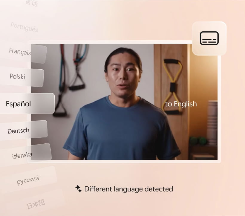 PCの⾳声をリアルタイムで⽂字起こしできる機能。翻訳表⽰にも対応しているため、海外拠点との会議や多⾔語のウェビナーでも内容を追いやすく、聞き漏らしや認識違いを減らせます(40以上の言語から英語に、27言語から中国語(簡体字)に翻訳)。