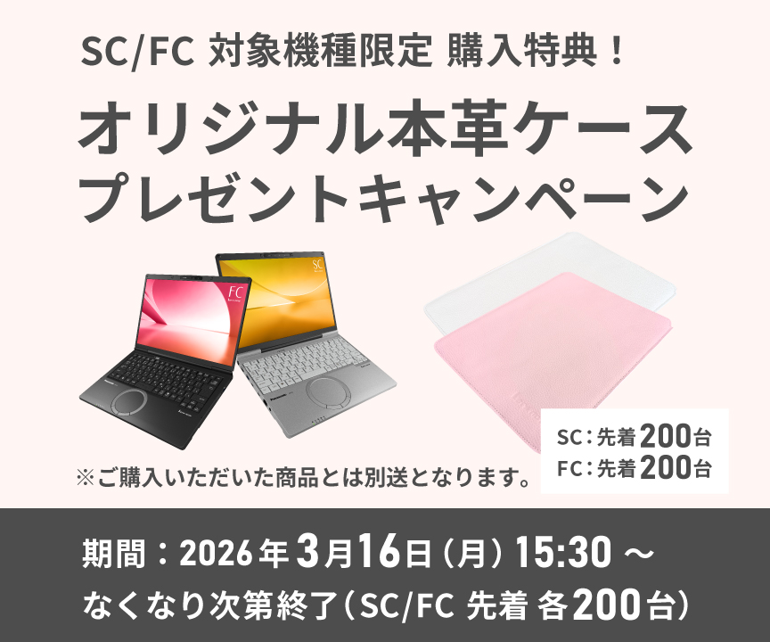 カスタマイズレッツノート SC/FC 対象機種をご購入いただいた方(先着 各200台)に、専用オリジナルケースをプレゼントいたします。