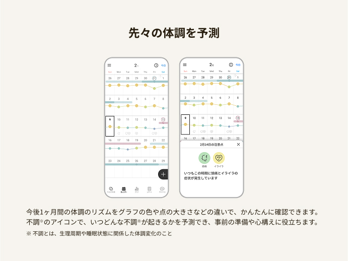 - ・閉経された方、生理が無い状態が長期間続いている方、低用量ピル等で長期に出血を止めている方、妊娠中の方には、適切な情報が出ないことがあります。