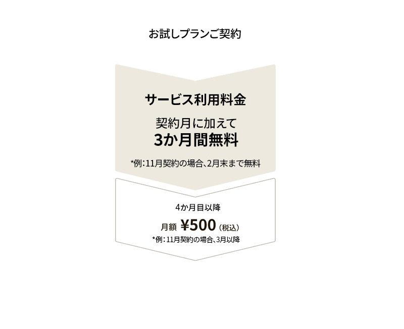 - ・無料トライアル期間中に月額のサービス利用契約を解約された場合も、解約料はかかりません。