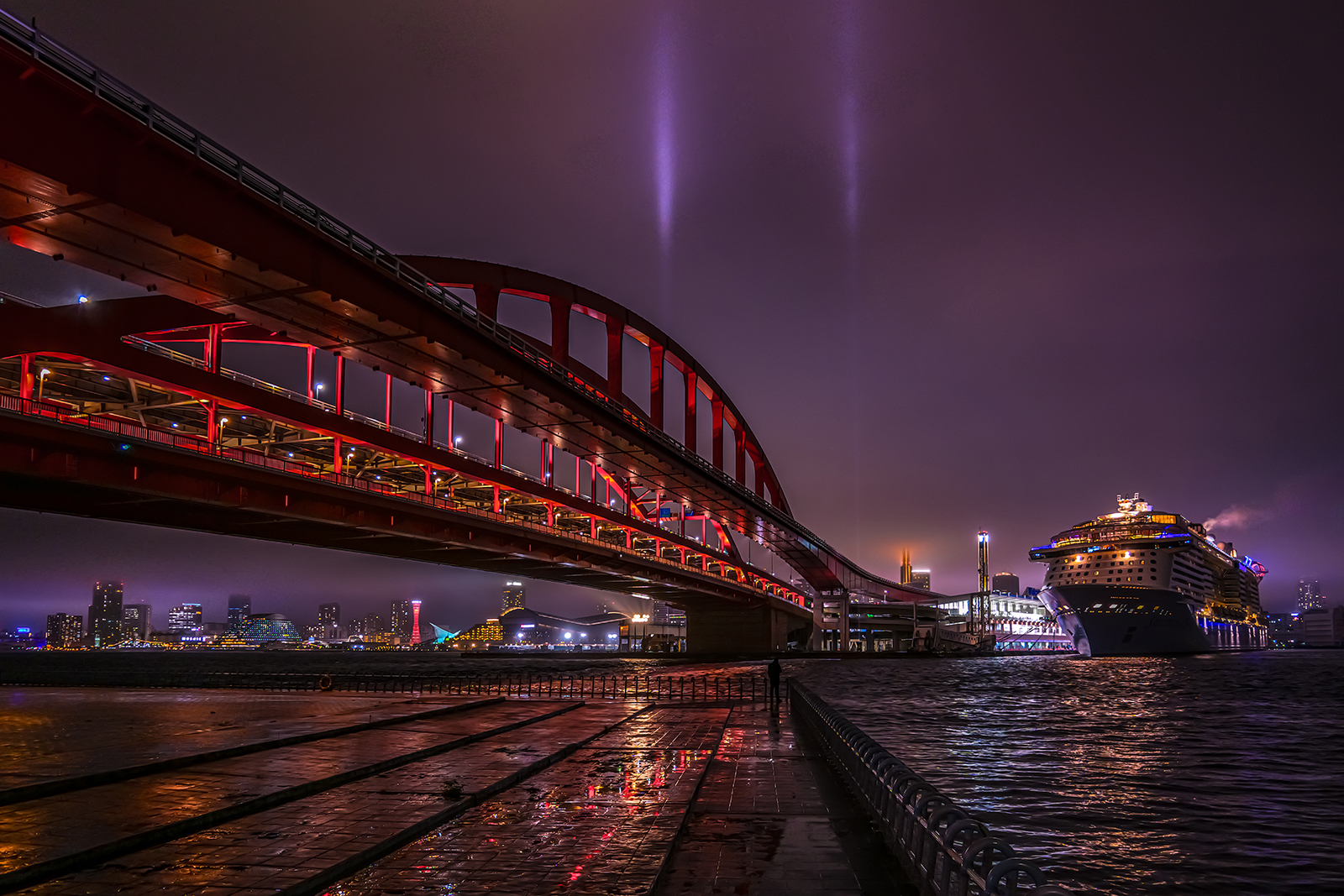佳作入賞おめでとうございます。ダイナミックに撮影された雨後の神戸の港風景がとても美しい作品ですね。構図はとても迫力があり、橋、旅客船、背景のポートタワーを含めた夜景、そして手前のリフレクションと情報は多いですが、しっかりとまとまっていると思います。天気はなかなか難しかったと思いますが、逆にこの雨上がりだからこそ撮れた傑作だと思います。この場所に行ってみたくなりました。
