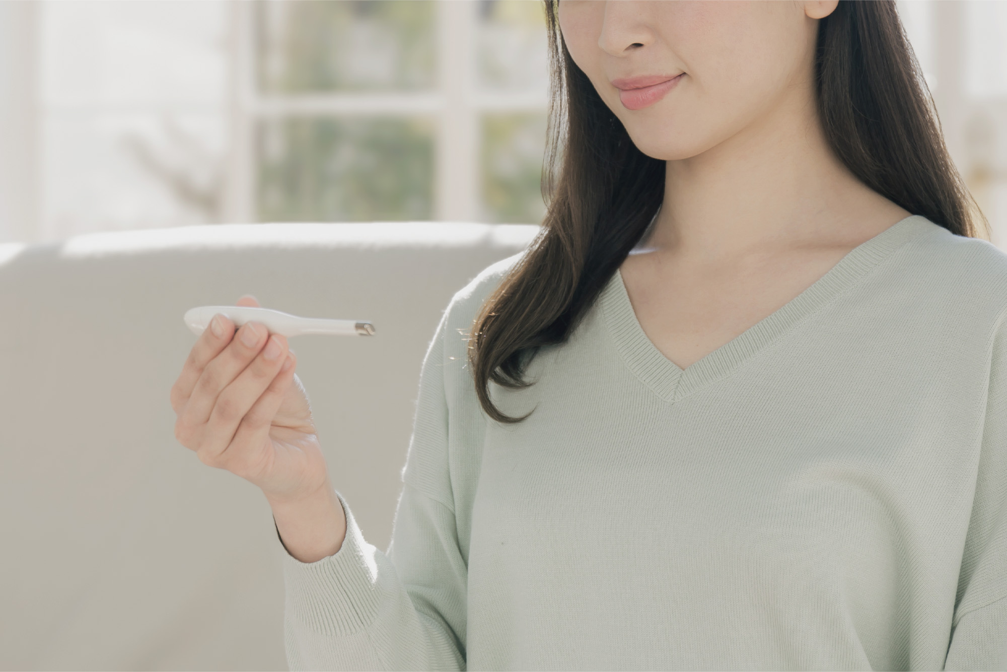 排卵後、プロゲステロンの分泌により体温が高い時期が続きます。高温期が2週間以上続くときは、妊娠した可能性が高いと考えられます。