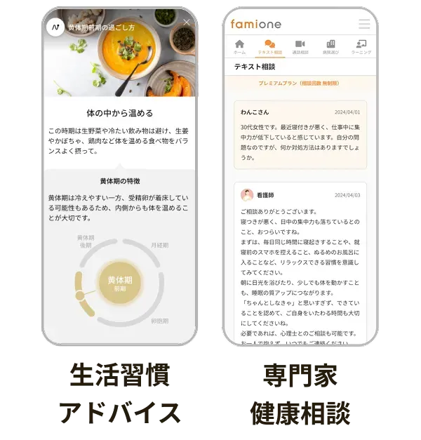 - ・看護師、薬剤師、臨床心理士など、多数の専門家にオンラインで相談できる