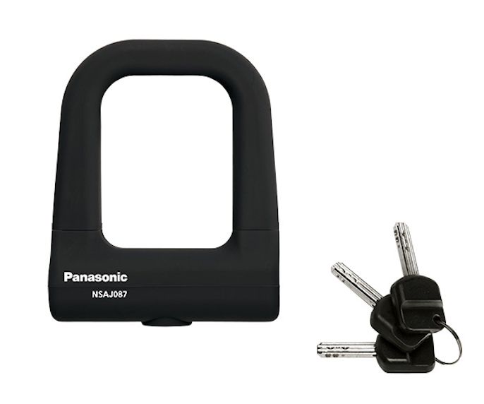電動アシスト自転車のバッテリー盗難を防止するためにおすすめしたいのが、パナソニックの「シリコンカバー採用の「純正ミニU型ロック」です。先述の通り、バッテリーの盗難を防ぐには、二重ロックをするのが効果的ですが、その際に気になるのが鍵の携帯性ではないでしょうか。こちらの商品は、ミニタイプで重さも約300g(本体のみ)と、簡単に持ち運びできます。また、不正開錠に強いダブルディンプルキーを採用しています。シリコンカバーによって、自転車の塗装やフレームを優しく守れるのもうれしいポイントです。