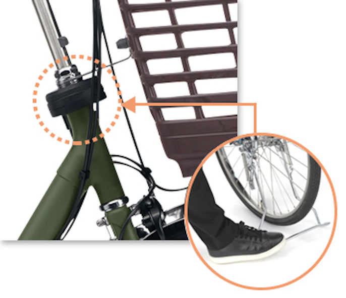 また、スタンドを立てるのと同時にハンドルが固定※3される機能「スタピタ2S」は、駐輪時にハンドルがロックされてふらつきにくくなるので、荷物の乗せ下ろしも簡単です。