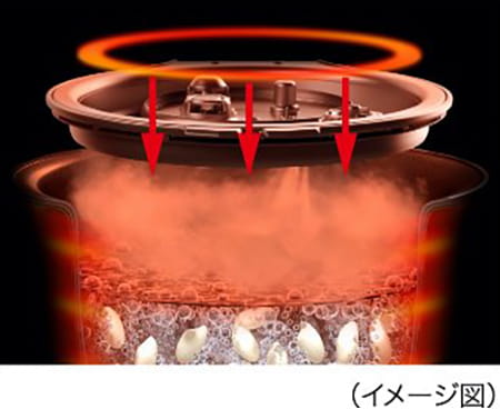 ふたIHで釜の上から加熱し続けることができるので釜内部の温度を下げることなく、炊き上げることができます。