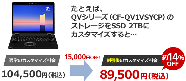 カスタマイズレッツノートをご購入の際にストレージをカスタマイズし、クーポンを利用すると、SSDのカスタマイズ料金が最大15,000円OFFになります!