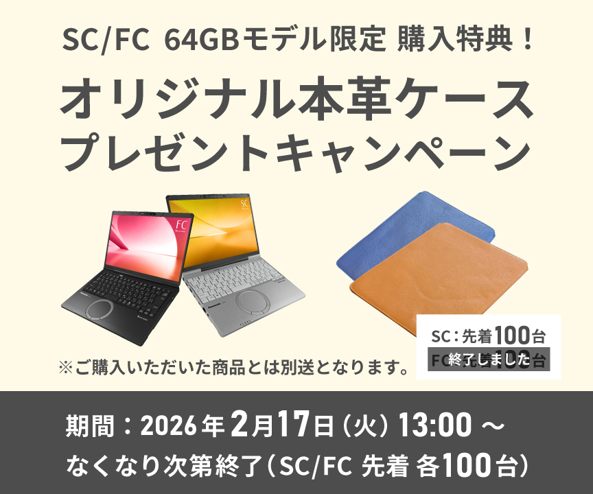 カスタマイズレッツノート SC/FC 64GBモデルをご購入いただいた方(先着 各100台)に、専用オリジナルケースをプレゼントいたします。