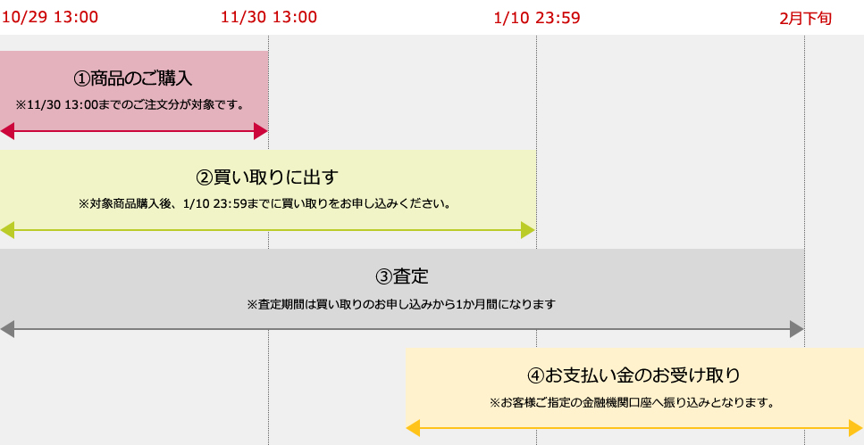 - ※2 対象商品購入後、1/10 23:59までに買い取りをお申し込みください。