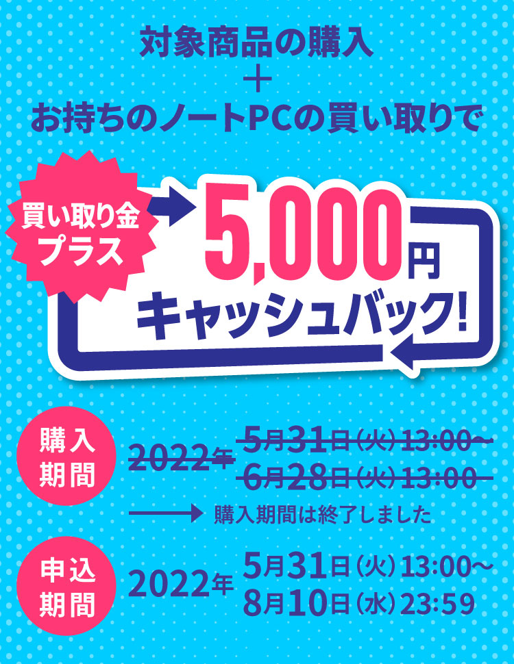 ⇒購入期間は終了しました - 【 2 】 2022年8月10日 23:59までに、ご不要のノートPCを買い取り申し込み