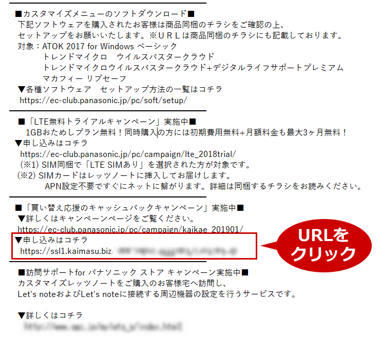 - ※ 本キャンペーンはパナソニック ストア プラス 個人向けサイトでカスタマイズレッツノートをキャンペーン対象期間にご注文されたお客様が対象となります。