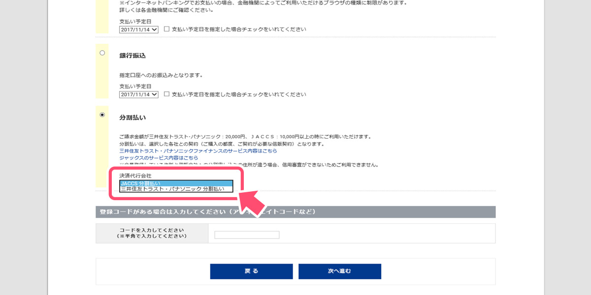 - ※お支払い方法で「JACCS 分割払い」をお選びいただきますと、自動的に本キャンペーンが適用されます。