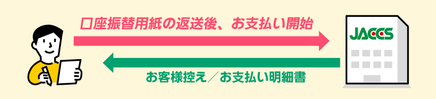 後日郵送される口座振替用紙にて引き落とし口座の設定を行ってください。お申込み日から翌々月より引き落としが開始されます。