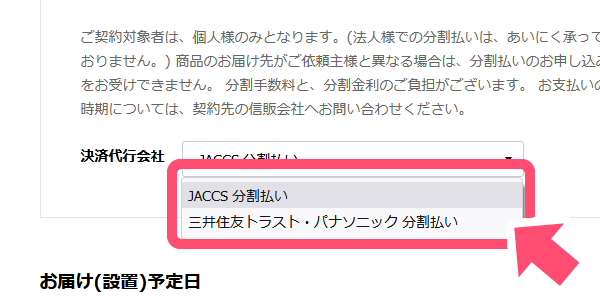 - ※ご注文者とお届け先が異なる場合、また配送先がご自宅でない場合は、分割払いのお申込みをお受けできません。