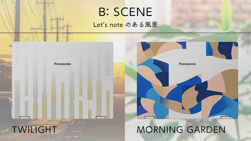 - ●Panasonic JapanのX(旧Twitter)アカウント(@panasonic_cp)内、レッツノート天板デザイン人気投票のアンケート投稿よりご回答ください。