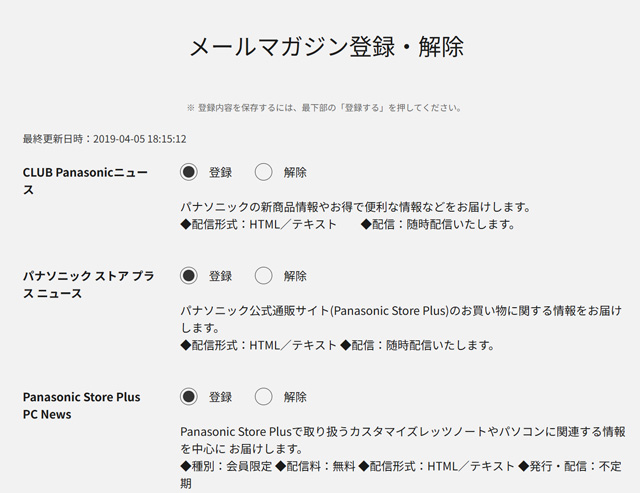 会員様限定キャンペーンから新商品情報までメールマガジンの登録/解除
