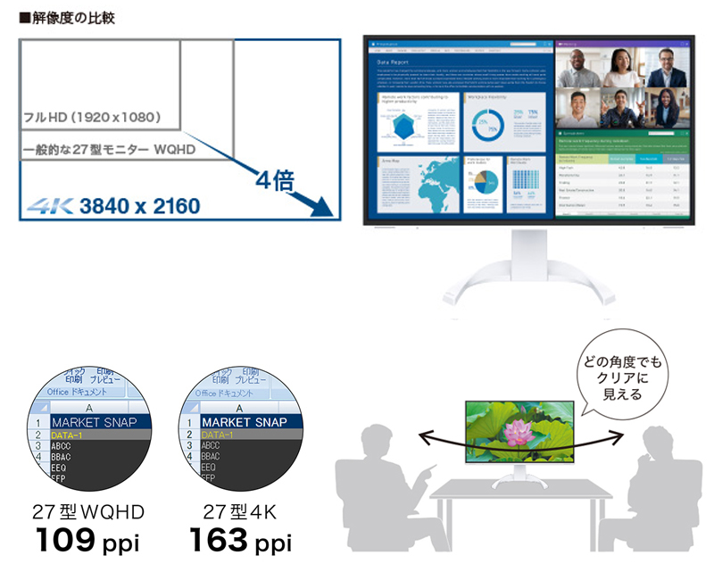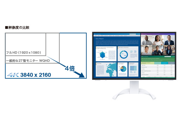 使いやすい27型に4K高解像度を表示で、作業効率アップ。