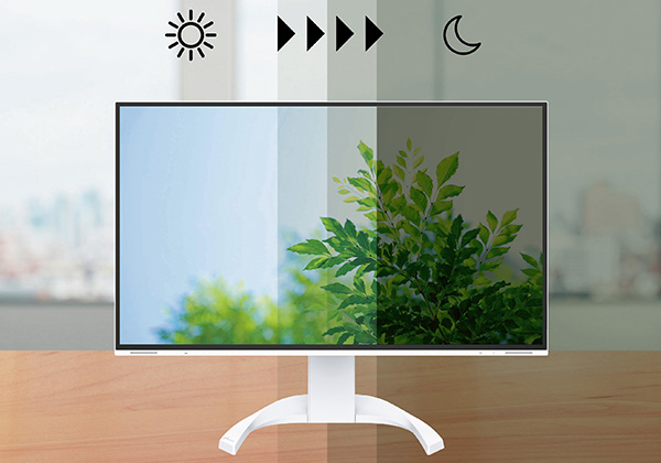 環境光を感知し、周囲の明るさに応じて画面の明るさを自動で調整するAuto EcoView機能を搭載。環境照度への画面の明るさの追従性を上げることで、より自然な調光に進化。目の疲れを軽減します。