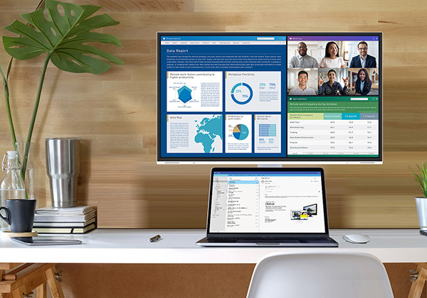 ノートPCとUSB Type-C®ケーブル1本の接続で、画面表示、USB信号の伝送のみならず、PCへの給電、有線LAN接続を実現。社内会議や外出からデスクに戻った際に、ノートPCからケーブルを1本接続するだけで、快適なPC作業をすぐに始められます。