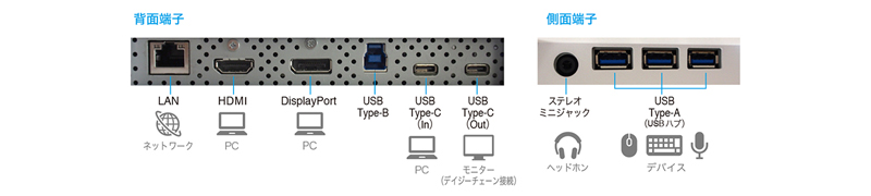 | 入力端子 | USB Type-C, DisplayPort, HDMI |