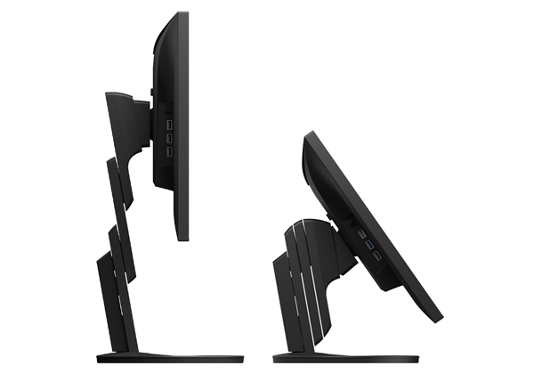 快適な画面位置に無段階で高さを調整。回転で縦表示も可能。