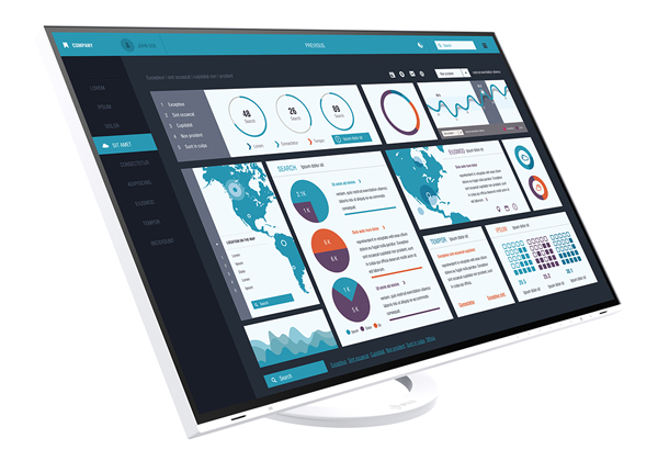 省スペースかつ画面の枠を感じさせないフレームレスデザインを採用。また机上の圧迫感を和らげ、オフィスをぐっと明るくするホワイトモデルも用意しました。ケーブルまでホワイトで統一しているので、フリーアドレスやコワーキングなど先進的なオフィスをトータルコーディネートできます。