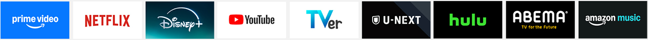 - ※1 サービスのご利用には別途登録・契約や料金が必要な場合があります。アプリをお使いになる場合は、Amazon アカウントでのサインインと利用規約への同意が必要です。アプリは提供事業者の都合により、予告なく変更・停止・終了する場合があります。アプリの変更や終了にかかわるいかなる損害、損失に対しても当社は責任を負いません。また、アプリをご利用の際には機器本体のバージョンアップが必要となる場合があります。アプリの仕様などにより、サービスの一部がご利用いただけない場合があります。各機能の利用にはアプリのインストールが必要な場合があります。第三者が提供するアプリ等のサービスについて、動作の保証をするものではございません。また、これらについて当社はいかなる責任も負いかねます。