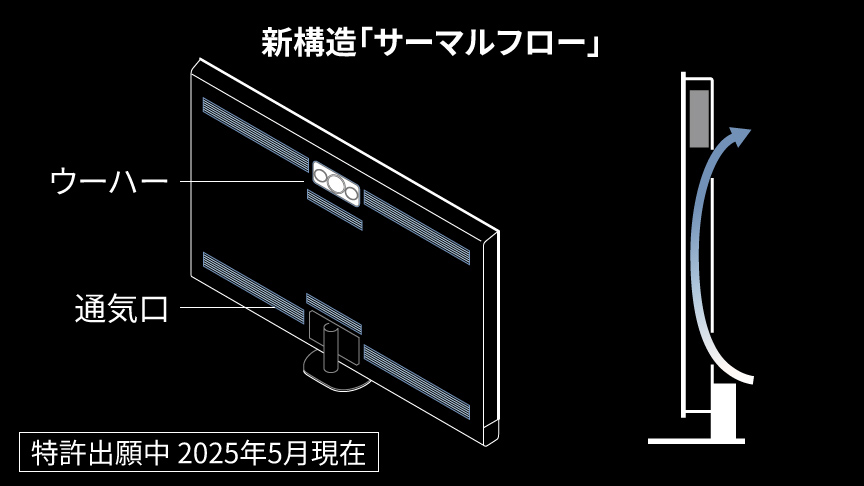 さらに、そのパネル性能を最大限に引き出すためにビエラが従来からこだわってきた放熱技術を新たなるステージへと進化させ、パネルが発した熱をさらに素早く空気中に放熱させる独自技術「サーマルフロー」を搭載しています。